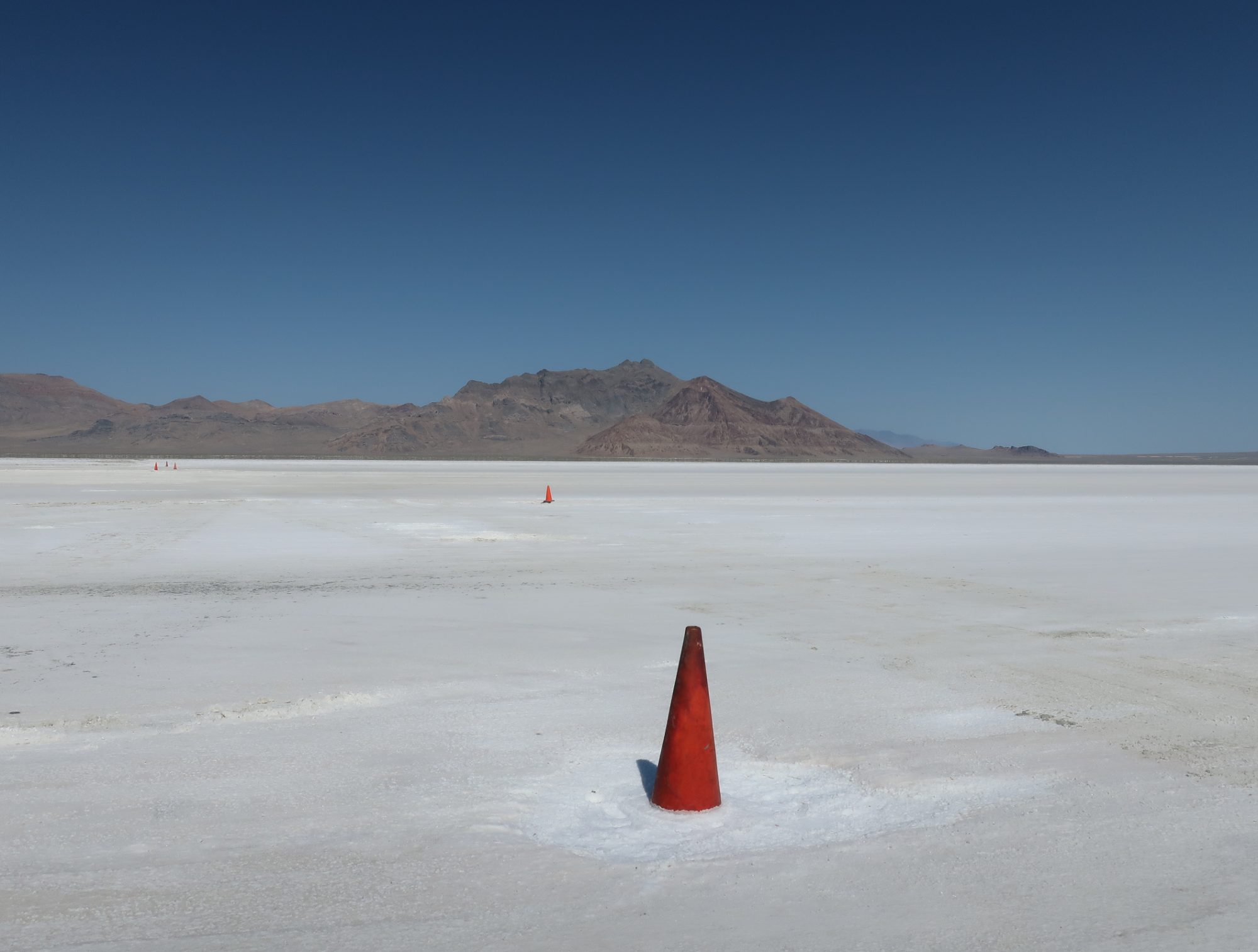 州間高速80号の4番出口を出て右に行くと、ボンネビル・スピードウェイにたどり着きます。夏季の湖が干上がった8月、この現象を活かして、自動車、バイクのあらゆるカテゴリでスピードを競うレースが開催されます。レース開催時以外はただの干上がった湖となりますが、自由に走ってもいいようでした。